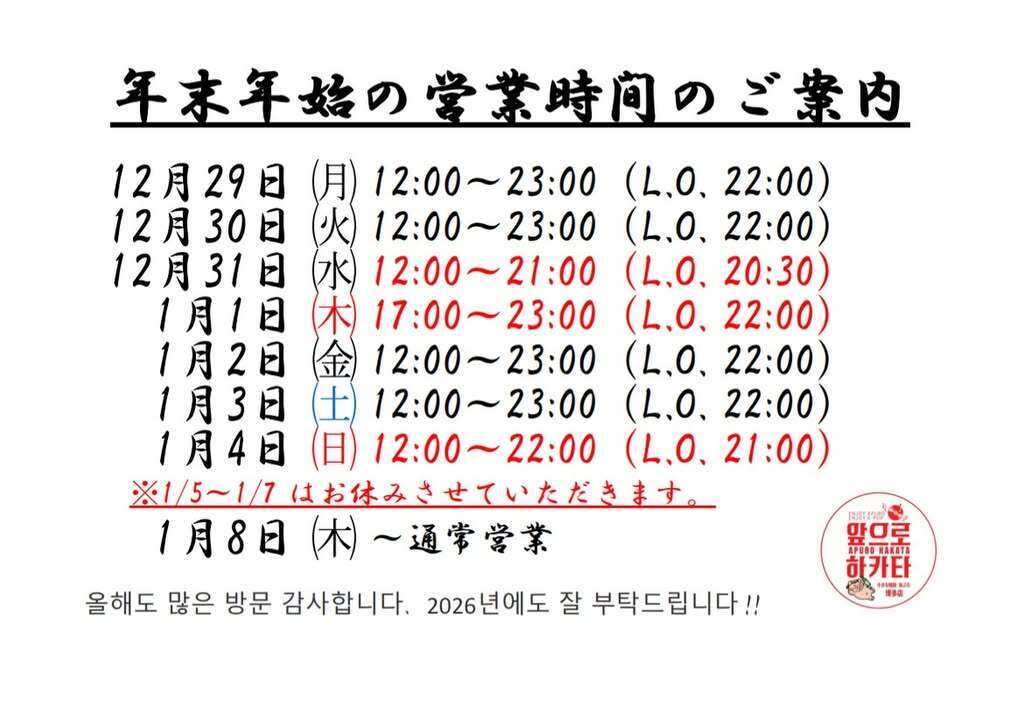 今年は2011年のオープン以来、初の年末年始営業いたします!!
